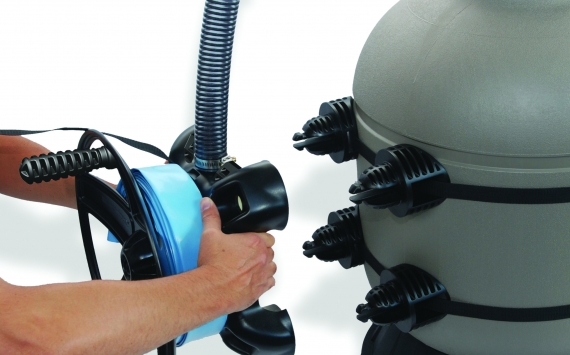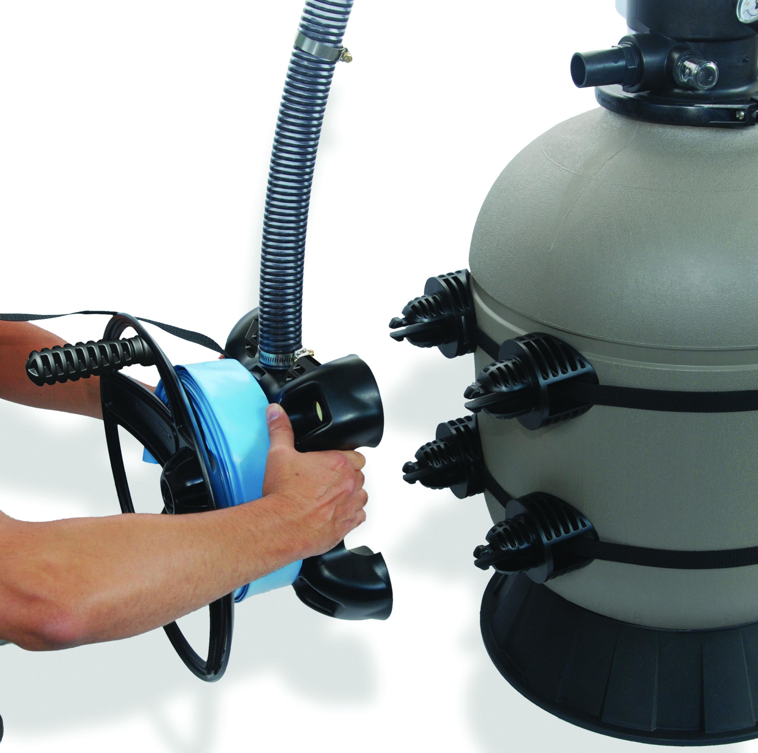 Le BackWash N Roll a été conçu pour éliminer le désordre autour de la piscine en imaginant un rangement pour le tuyau de vidange (Backwash) qui se fixe au filtre existant sans le modifier ni l'endommager.